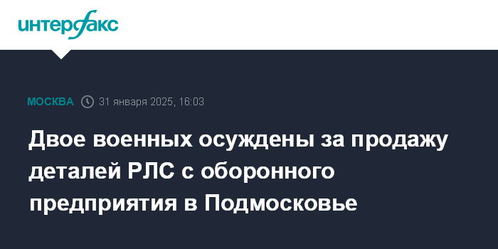 Двое военных осуждены за продажу деталей РЛС с оборонного предприятия в Подмосковье