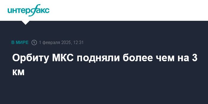 "В результате средняя высота орбиты станции увеличилась на 3,2 км и составила 417,44 км", - говорится в сообщении.
