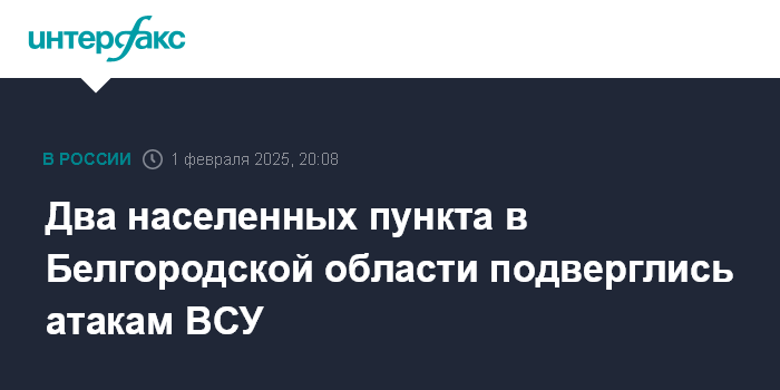 Москва. 1 февраля. INTERFAX.RU - Губернатор Белгородской области Вячеслав Гладков сообщил об атаке с украинской стороны на два населенных пункта под Белгородом.