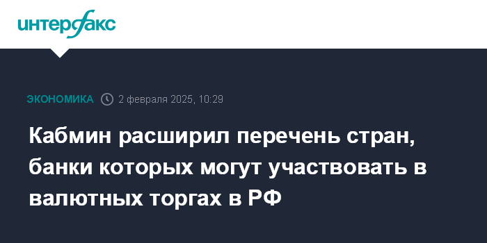 Кабмин расширил перечень стран, банки которых могут участвовать в валютных торгах в РФ