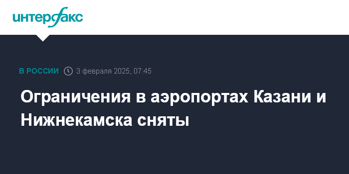 Москва. 3 февраля. INTERFAX.RU - В аэропортах Казани и Нижнекамска сняты ограничения на прием и выпуск самолетов, сообщили в Росавиации.