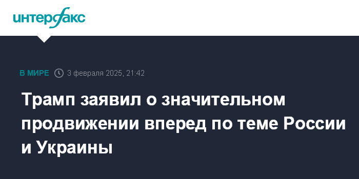 Москва. 3 февраля. INTERFAX.RU - Президент США Дональд Трамп в понедельник заявил, что он сейчас работает над соглашением по решению кризиса на Украине и что Вашингтон уже достиг успехов в этом направлении.