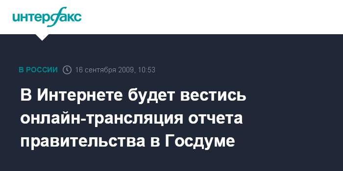 В Интернете будет вестись онлайн-трансляция отчета правительства в Госдуме