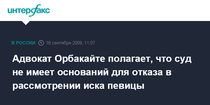 Адвокат Орбакайте полагает, что суд не имеет оснований для отказа в рассмотрении иска певицы