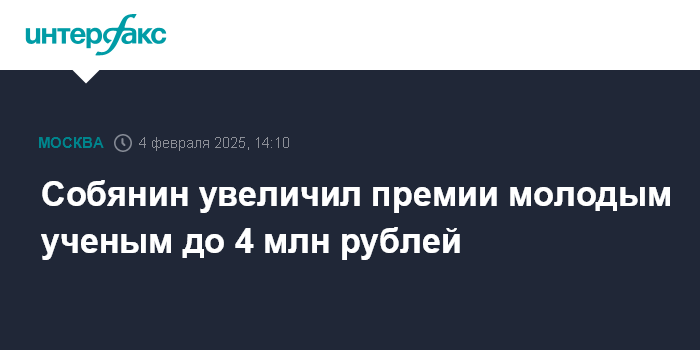 Собянин увеличил премии молодым ученым до 4 млн рублей