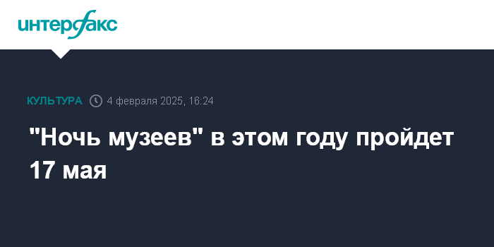 Москва. 4 февраля. INTERFAX.RU - Всероссийская акция "Ночь музеев" в 2025 году пройдет 17 мая и будет посвящена теме "Герои", сообщила глава департамента музеев и поддержки циркового искусства министерства культуры РФ Елена Харламова.