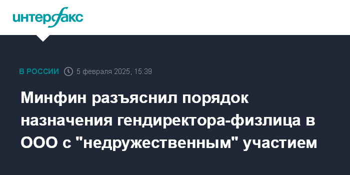 Минфин разъяснил порядок назначения гендиректора-физлица в ООО с "недружественным" участием