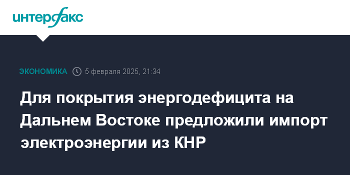 Для покрытия энергодефицита на Дальнем Востоке предложили импорт электроэнергии из КНР