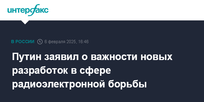 Москва. 6 февраля. INTERFAX.RU - Президент РФ Владимир Путин отметил важность новых разработок в сфере радиоэлектронной борьбы для обеспечения обороноспособности страны и подчеркнул, что если Россия не будет постоянно идти впереди в таких разработках, этим воспользуются ее оппоненты.