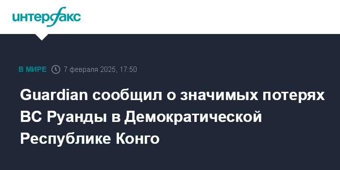 Guardian сообщил о значимых потерях ВС Руанды в Демократической Республике Конго