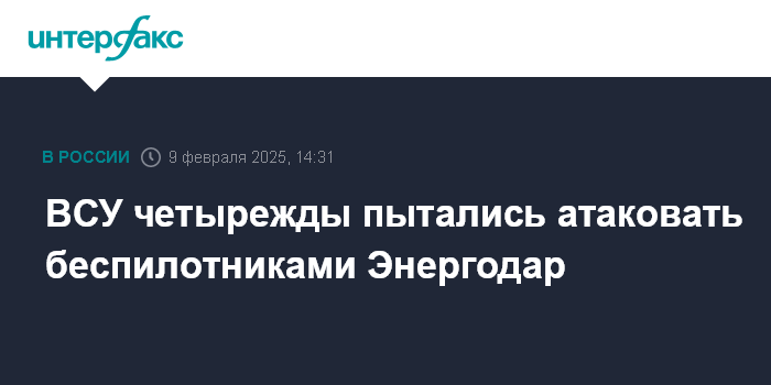 Москва. 9 февраля. INTERFAX.RU - ВСУ предприняли в воскресенье четыре попытки атаковать Энергодар с помощью дронов-камикадзе, сообщил врио главы администрации города Максим Пухов.