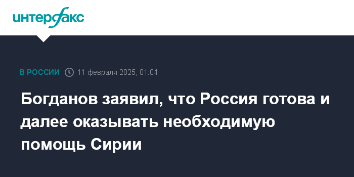 "Сегодня Сирия переживает непростые времена. Надеемся, что ее народ успешно преодолеет многочисленные трудности, ставшие результатом затяжного кризиса в стране. Со своей стороны готовы и далее оказывать сирийцам необходимую помощь. События, приведшие к смене руководства в Сирии в декабре 2024 года, не меняют наших принципиальных подходов. Неизменно выступали и продолжаем выступать в поддержку суверенитета, единства и территориальной целостности САР. Исходим из того, что определять будущее страны должны сами сирийцы через широкий общенациональный диалог с учетом законных интересов всех политических сил и этноконфессиональных групп", - сказал в интервью Богданов.
