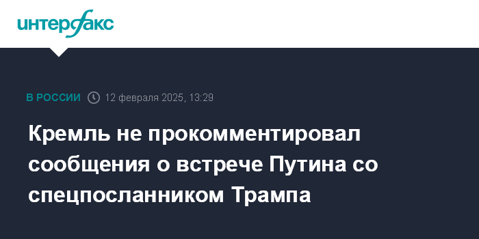 Москва. 12 февраля. INTERFAX.RU - В Кремле не стали комментировать сообщения американских СМИ о том, что президент РФ Владимир Путин встречался со спецпосланником президента США Дональда Трампа по Ближнему Востоку Стивом Уиткоффом.