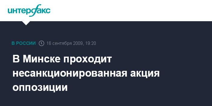 Минск. 16 сентября. INTERFAX.RU - Представители белорусской оппозиции проводят в Минске несанкционированную уличную акцию.