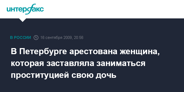 В Петербурге арестована женщина, которая заставляла заниматься проституцией свою дочь