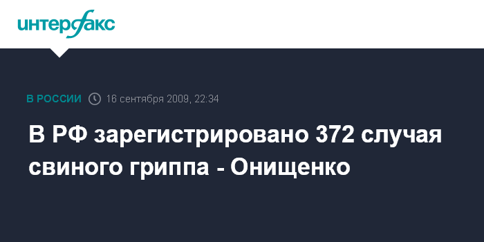 9 сентября глава Роспотребнадзора сообщал о 319 случаях заболевания свиным гриппом в РФ.