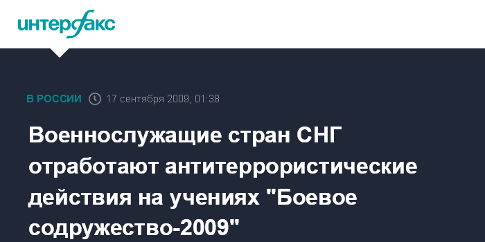 Военнослужащие стран СНГ отработают антитеррористические действия на учениях "Боевое содружество-2009"