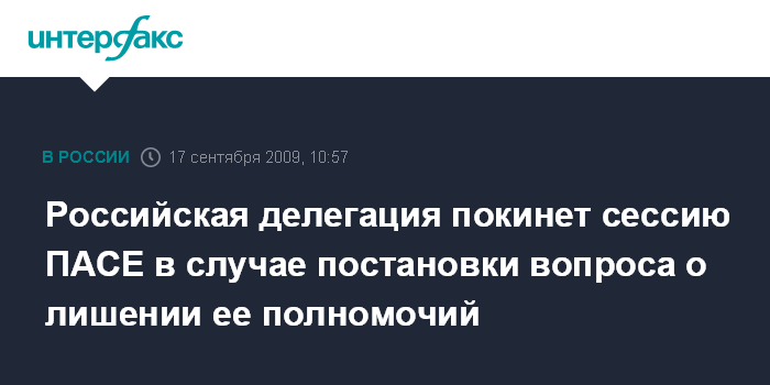 Москва. 17 сентября. INTERFAX.RU - Председатель Госдумы Борис Грызлов заявил, что российской делегации в Парламентской ассамблее Совета Европы дана директива покинуть заседание ассамблеи в случае, если она примет решение о лишении российской делегации полномочий.