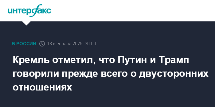 Кремль отметил, что Путин и Трамп говорили прежде всего о двусторонних отношениях