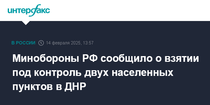 Минобороны РФ сообщило о взятии под контроль двух населенных пунктов в ДНР