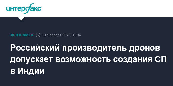 Москва. 18 февраля. INTERFAX.RU - Группа компаний "Кронштадт" сообщила о возможности локализации производства и создания совместных предприятий в Индии.