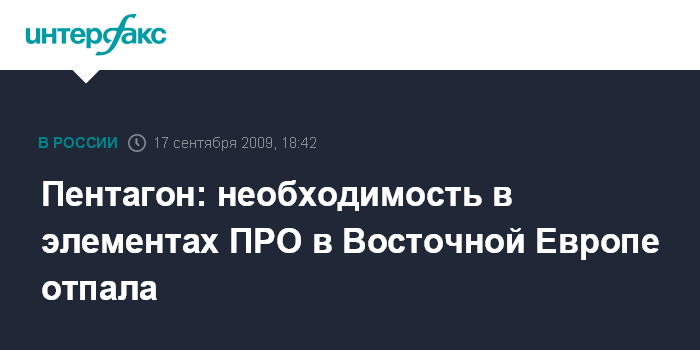 Пентагон: необходимость в элементах ПРО в Восточной Европе отпала