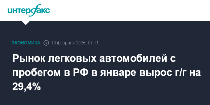 Москва. 19 февраля. INTERFAX.RU - Рынок легковых автомобилей с пробегом в РФ в январе 2025 года вырос в годовом выражении на 29,4%, до 420,3 тыс. штук, сообщило аналитическое агентство "Автостат".