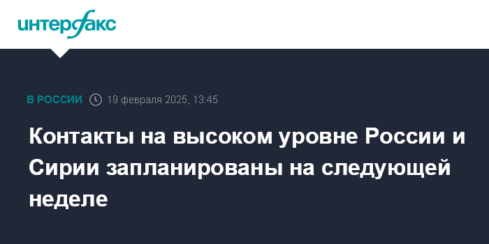 Контакты на высоком уровне России и Сирии запланированы на следующей неделе