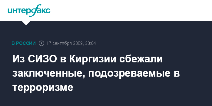Бишкек. 17 сентября. INTERFAX.RU - В Ошской области (юг Киргизии) объявлен розыск трех заключенных, совершивших утром в четверг побег из СИЗО Государственного комитета национальной безопасности (ГКНБ) Киргизии, сообщил "Интерфаксу" источник в правоохранительных структурах республики.