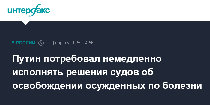 Путин потребовал немедленно исполнять решения судов об освобождении осужденных по болезни