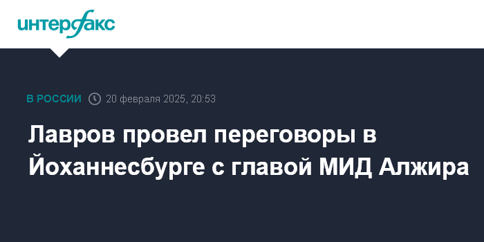 Москва. 20 февраля. INTERFAX.RU - Министр иностранных дел России Сергей Лавров провел переговоры с главой МИД Алжира Ахмедом Аттафом на полях министерской встречи G20 в Йоханнесбурге.