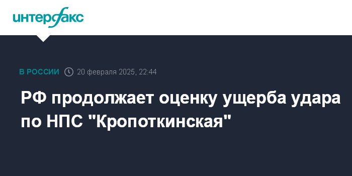 Москва. 20 февраля. INTERFAX.RU - Россия продолжает оценку ущерба и долгосрочных последствий удара по нефтеперекачивающей станции "Кропоткинская", сообщает МИД РФ.