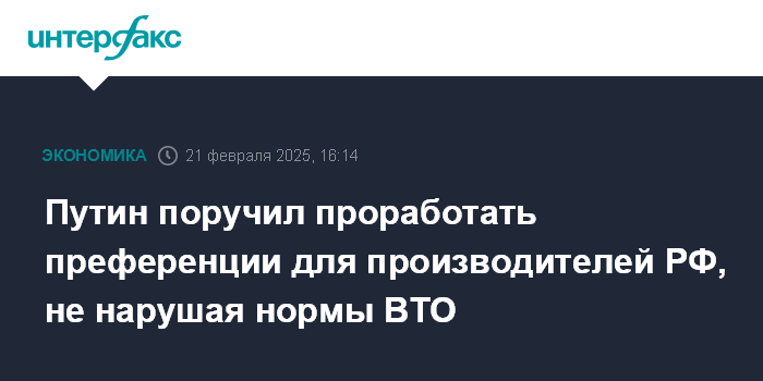 Путин поручил проработать преференции для производителей РФ, не нарушая нормы ВТО