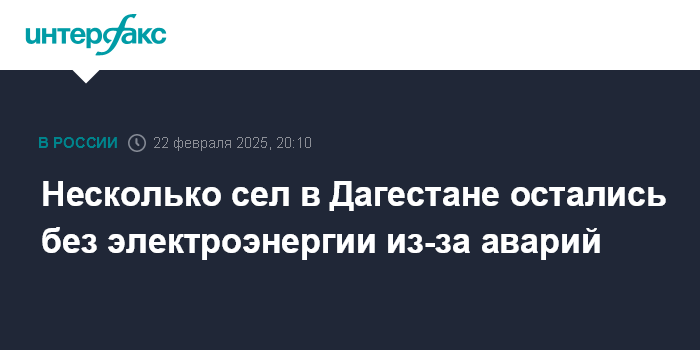 Москва. 22 февраля. INTERFAX.RU - Жители ряда сел Новолакского, Буйнакского и Казбековского районов Дагестана остались без электроэнергии, сообщил глава республики Сергей Меликов в своем телеграм-канале.