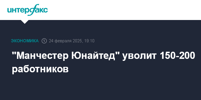 Москва. 24 февраля. INTERFAX.RU - Manchester United, владелец футбольного клуба "Манчестер Юнайтед" (МЮ), планирует сократить 150-200 работников в рамках реструктуризации, говорится в сообщении компании.
