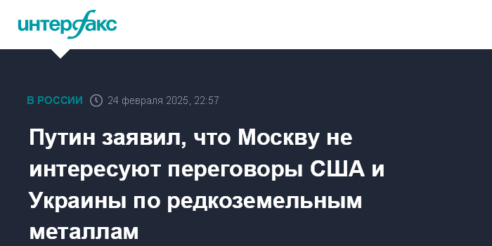 Москва. 24 февраля. INTERFAX.RU - Возможное соглашение между США и Украиной по редкоземельных металлах не является предметом интересов Москвы, заявил президент России Владимир Путин.