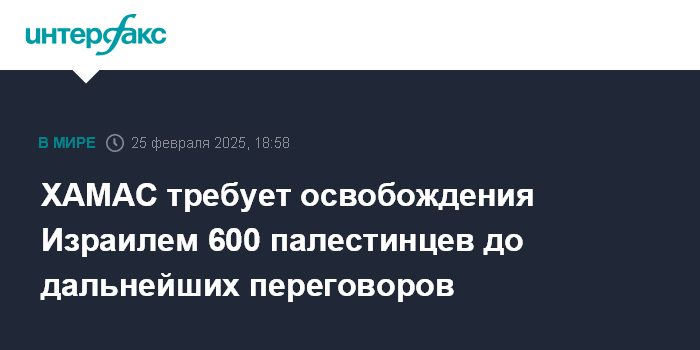 ХАМАС требует освобождения Израилем 600 палестинцев до дальнейших переговоров