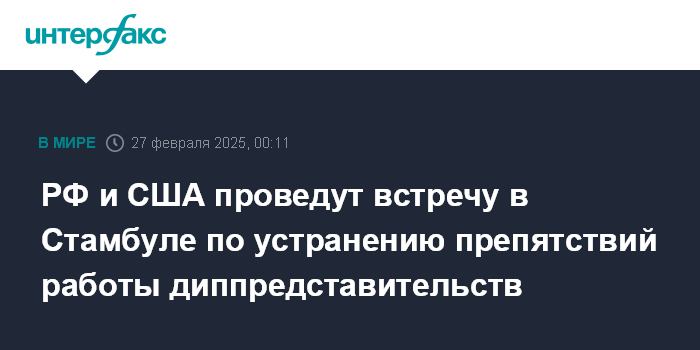 Москва. 27 февраля. INTERFAX.RU - Дипломаты высокого уровня России и США проведут встречу в Стамбуле 27 февраля, чтобы обсудить возобновление нормальной деятельности посольств в обеих странах, сообщил глава МИД РФ Сергей Лавров.