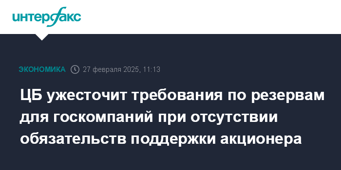 ЦБ ужесточит требования по резервам для госкомпаний при отсутствии обязательств поддержки акционера