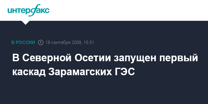 Москва. 18 сентября. INTERFAX.RU - Председатель правительства РФ Владимир Путин, находящийся в Сочи на международном инвестиционном форуме, принял в пятницу участие в пуске первого головного каскада Зарамагских ГЭС. При помощи трансляции, которая велась из Зарамага, расположенного на высоте 1 тыс 700 метров, В.Путин стал свидетелем пуска турбины, а также того, как вода, уже отработанная на гидроагрегате, сбрасывается в реку Ардон.