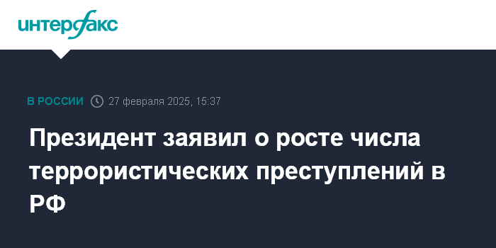 Москва. 27 февраля. INTERFAX.RU - Президент РФ Владимир Путин заявил, что число террористических преступлений в стране за последний год возросло, более половины из них организовано спецслужбами Украины.