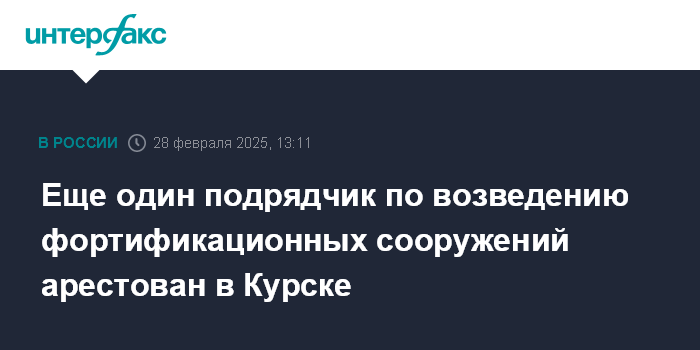Еще один подрядчик по возведению фортификационных сооружений арестован в Курске