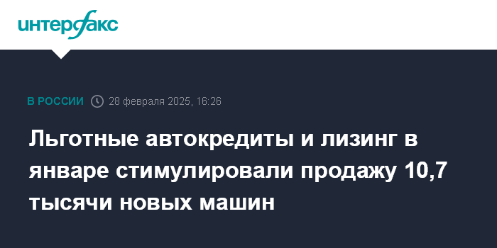Льготные автокредиты и лизинг в январе стимулировали продажу 10,7 тысячи новых машин
