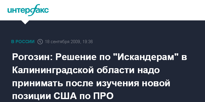 "Когда российские военные изучат в деталях решение Вашингтона об изменении программы стратегической ПРО США, тогда и будут озвучены конкретные решения по "Искандерам", - заявил "Интерфаксу" в пятницу Рогозин.