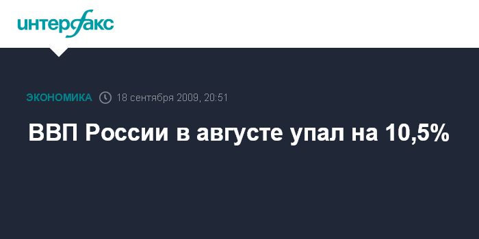 ВВП России в августе упал на 10,5%