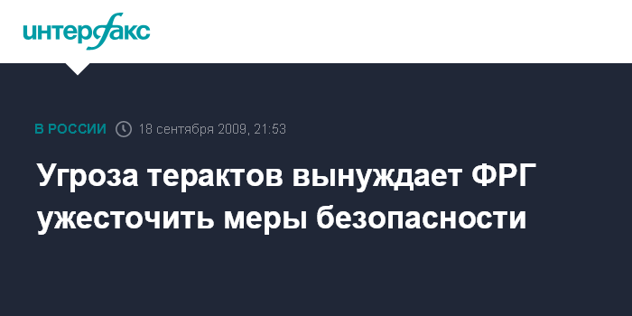 Министерство внутренних дел ФРГ рекомендовало усилить меры безопасности во всех местах большого скопления людей, на вокзалах и аэропортах, подтвердив существующую угрозу проведения терактов со стороны террористов "Аль-Каиды" и других исламистских группировок.