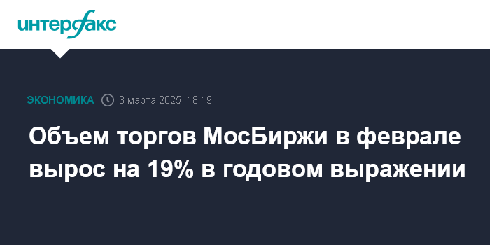 Объем торгов МосБиржи в феврале вырос на 19% в годовом выражении