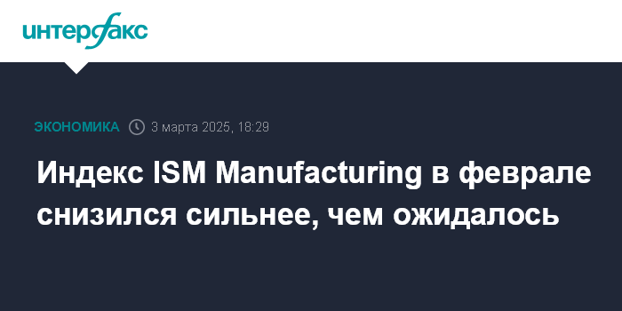 Индекс ISM Manufacturing в феврале снизился сильнее, чем ожидалось