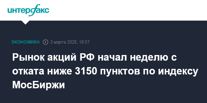 Рынок акций РФ начал неделю с отката ниже 3150 пунктов по индексу МосБиржи