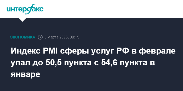 Индекс PMI сферы услуг РФ в феврале упал до 50,5 пункта с 54,6 пункта в январе